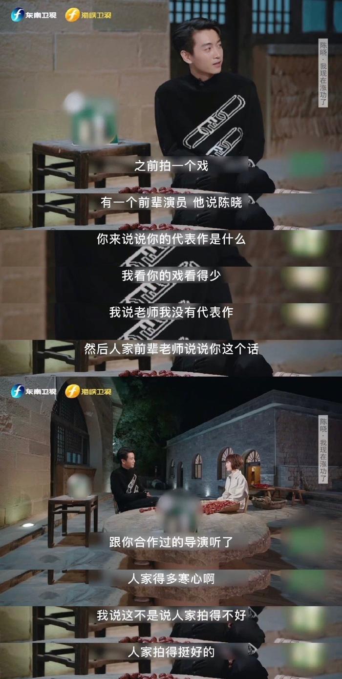在节目中,被问 “你是没有偶像包袱?”陈晓淡然一笑:“ 我觉得角色更重要。某种程度来说 ‘脸’ 其实只是演戏的道具或者工具。” 陈晓认为与粉丝之间的距离要依靠自己的作品去衡量。当粉丝希望他一直演古装戏的时候,他带来了沈星移、吴振峰等角色,在他看来古装偶像剧更像是一个造梦的空间,但是自己需要适时抽离出来拍一些现实主义的剧本。陈晓坦言自己对于工作的选择是随心随意,抱着务实的态度去体验不同的剧本人生。陈晓在节目里微笑着说:“我会尽量让粉丝们满意,但做得不舒服我也不会做。”